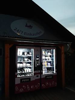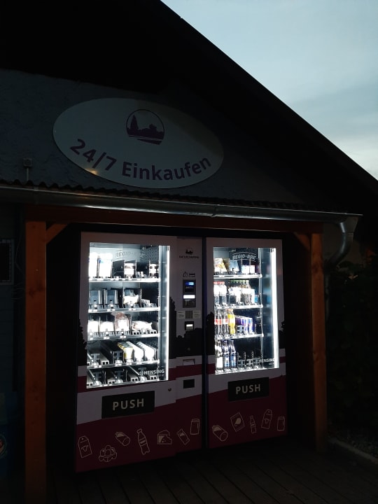 Automat auf dem Platz mit verschiedenen Artikeln (Getränke, Schokocreme usw.)