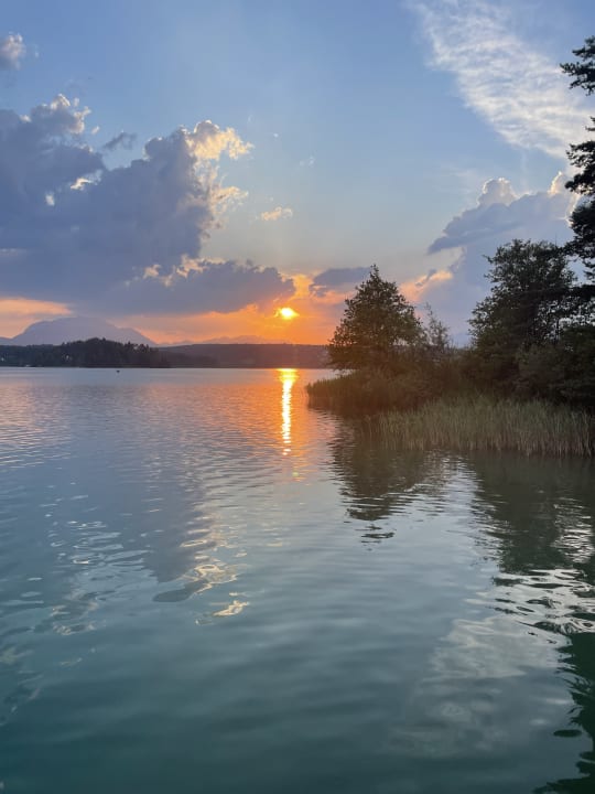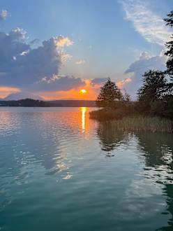 Blick vom Badesteg auf den See