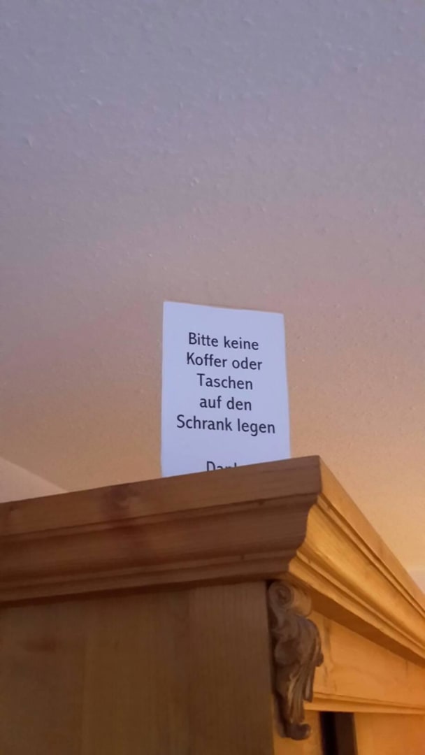 Eines von drei Verbotsschildern im Zimmer