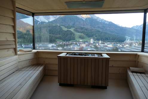 Schöne Biosauna mit Ausblick wie bei allen