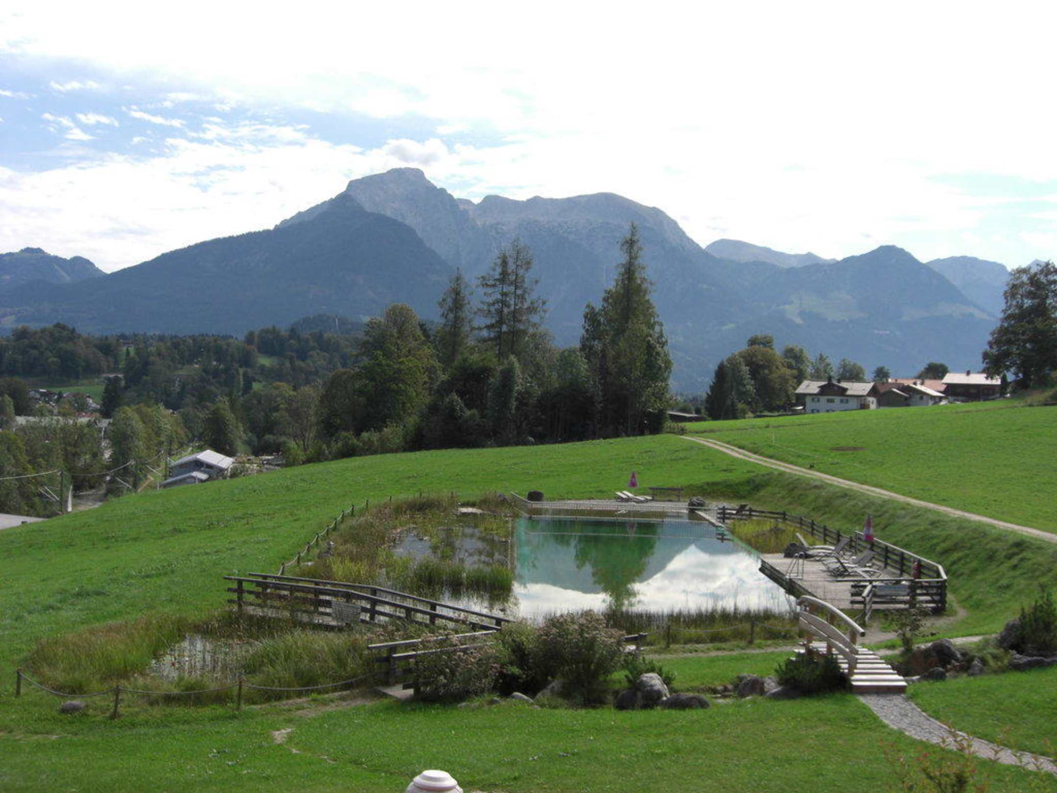 Naturbad mit Bergen im Hintergrund