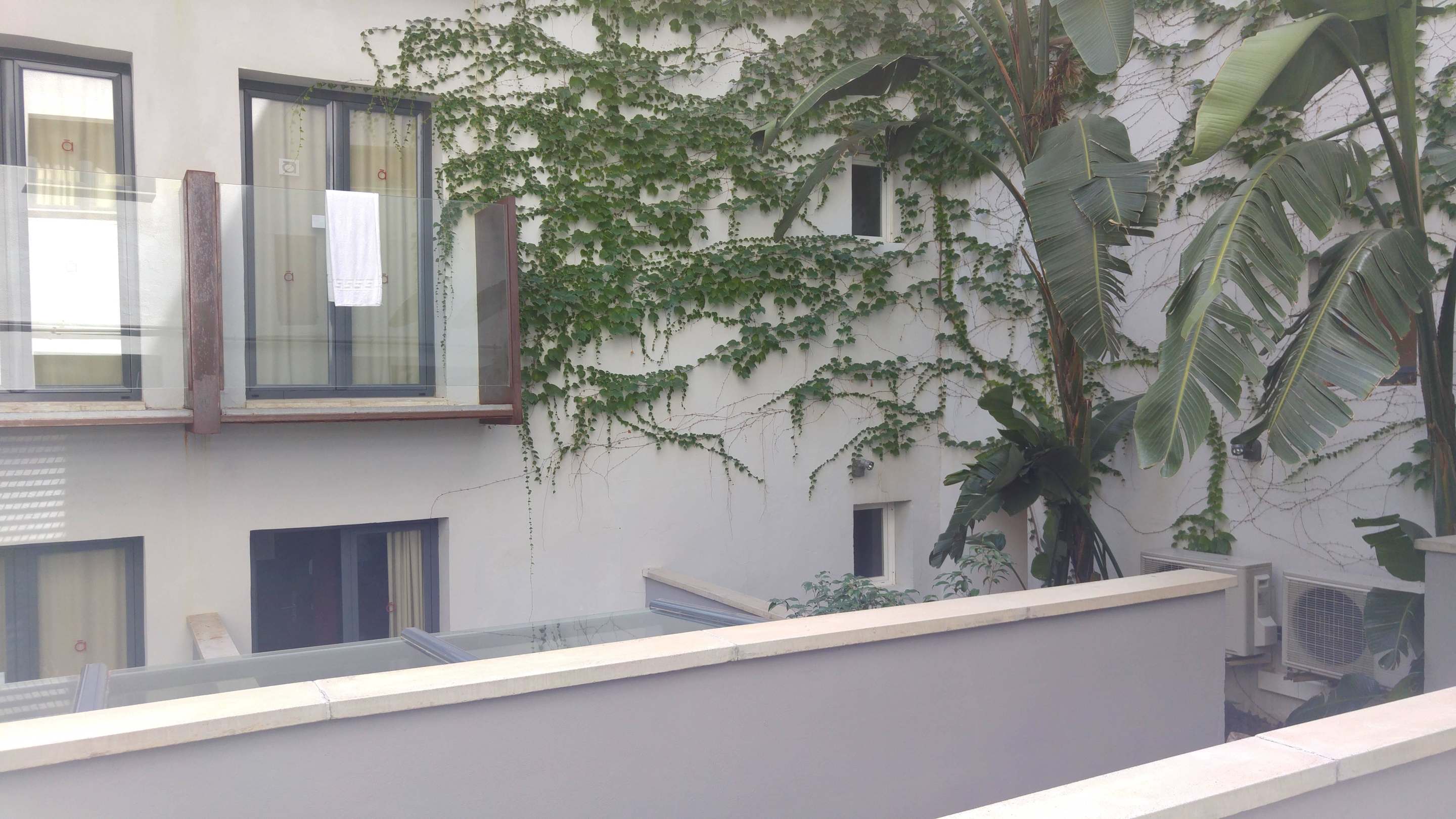 Terrasse mit AusblickDas war die Terrasse mit Ausblick auf den anderen Hotelkomplex. Leute liefen an der Terrasse vorbei.