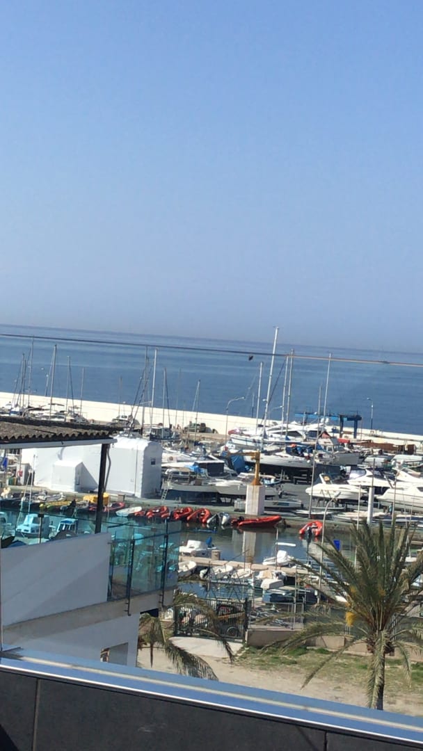 Blick aus dem Poolzimmer mit großer Terrasse Auf den Jachthafen
