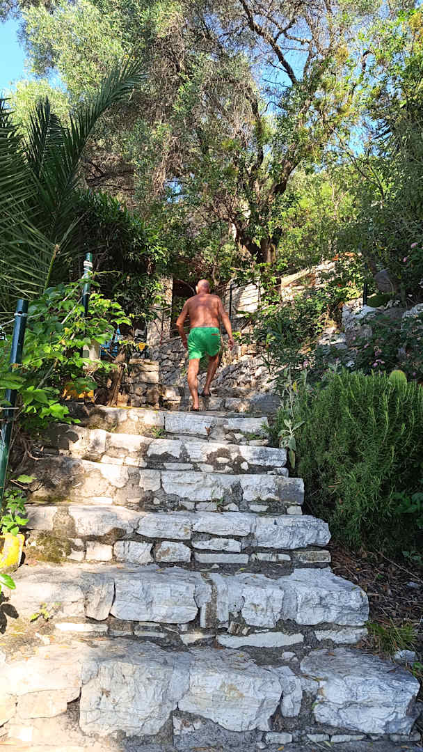 Gang hoch zum Hotel 60 Meter Höhenunterschied von den Terrassen aus