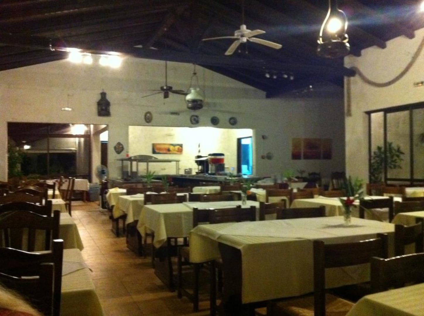 Hier sieht man den Innenbereich der Kantine, auf den Querträgern über den Tischen und der Essensauslage nisten Schwalben. Dies wird auch voll gedultet von der Leitung. Was das ab und zu bedeutet kann man sich denken.