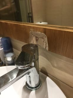Wasserhahn im Bad zu nah am Spiegel? -> Spiegelrahmen ausgesägt