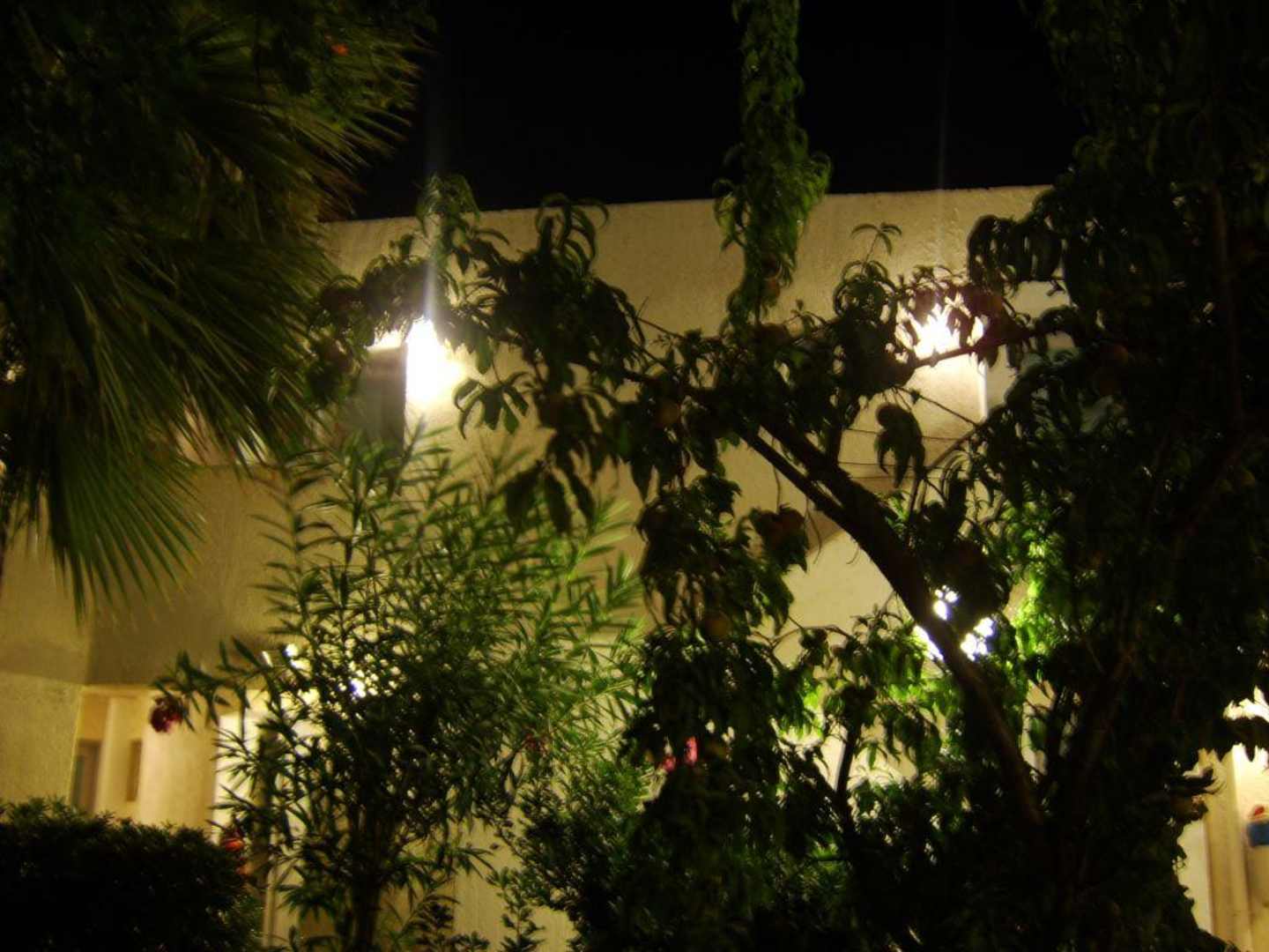 Hotelanlage bei NachtDas Nefeli Beach Hotel ist ein kleines gepflegtes Labyrinth. Auf diesem Bild sieht man eine Nachtaufnahme von unserem Balkon.