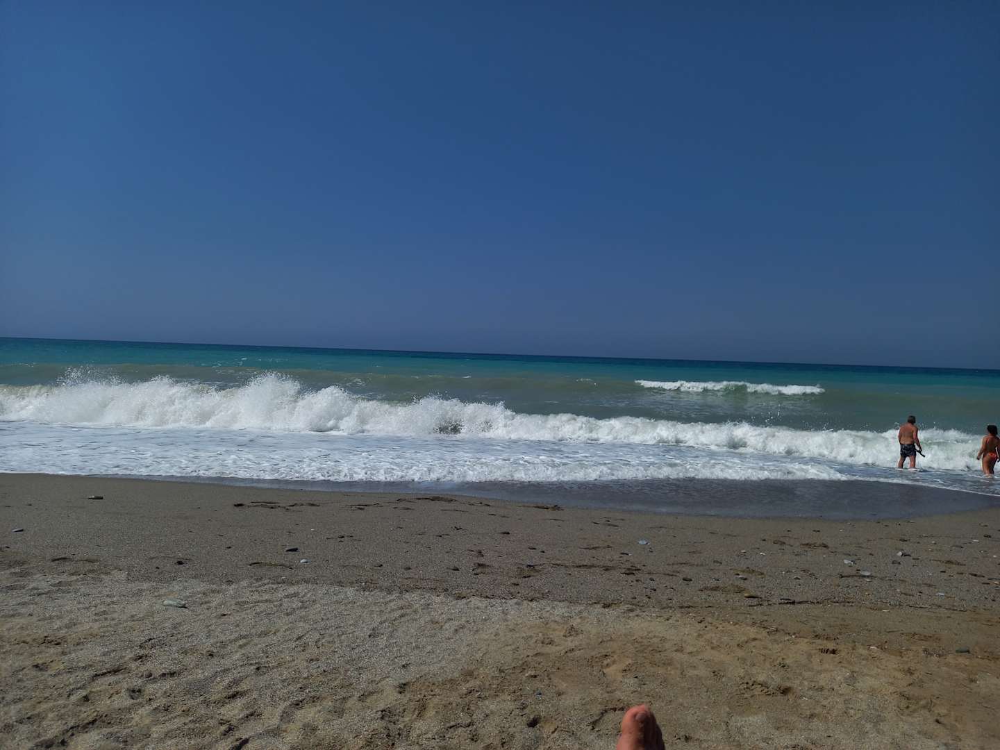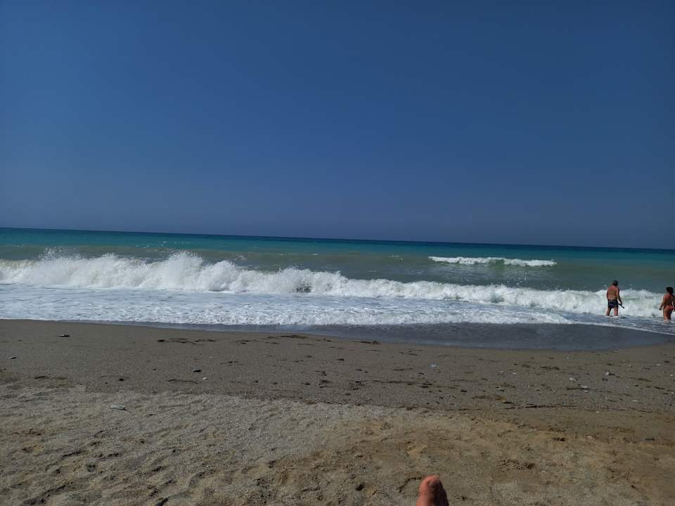 Pavlos Beach mit günstigen Strandliegen (4 EUR/Liege und Schirm pro Tag)