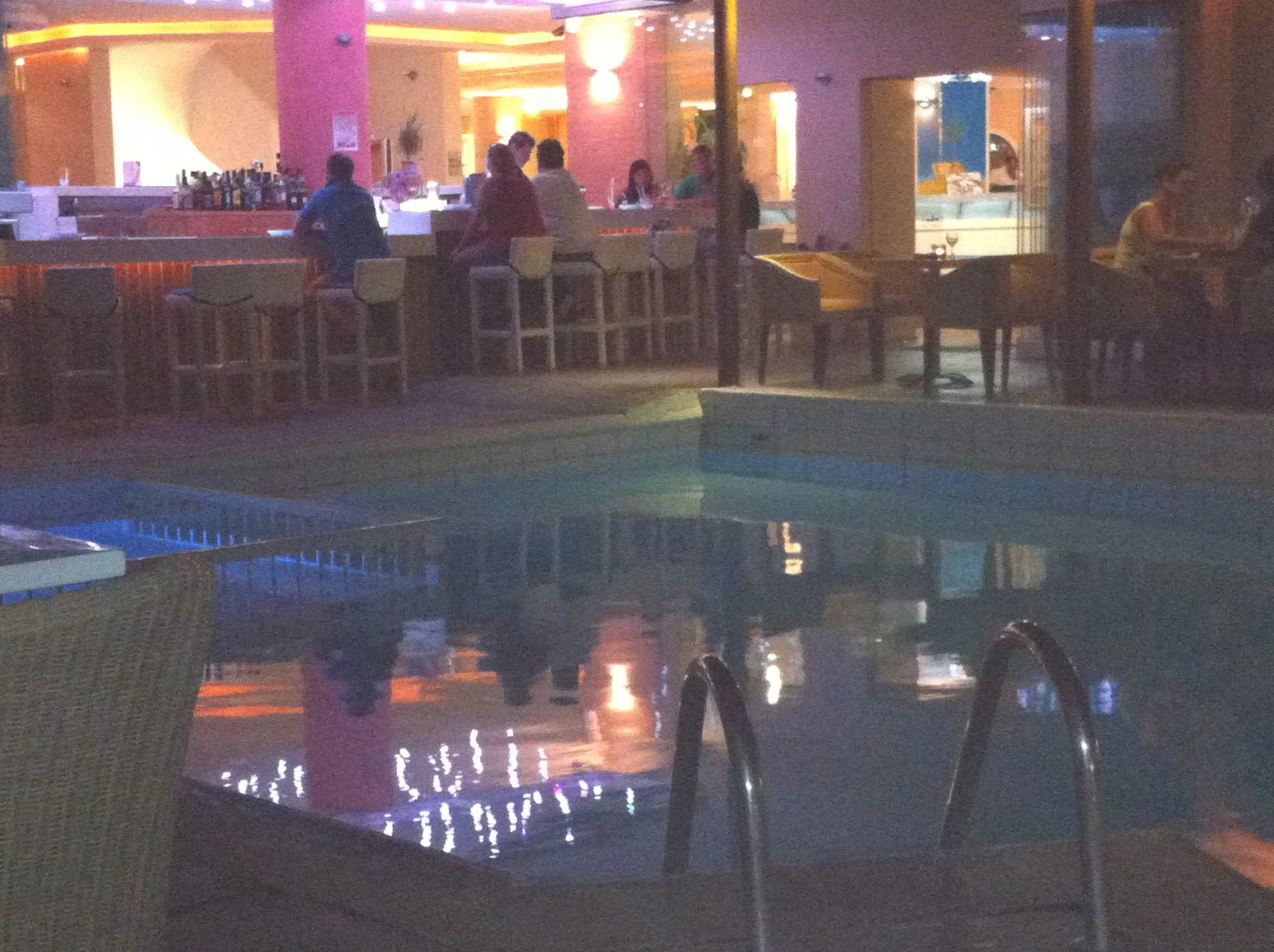 Der Pool am Haupthotel, Abends mit der Poolbar