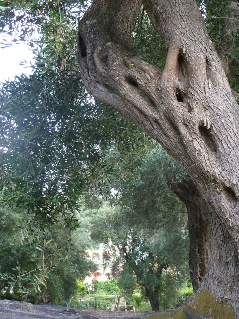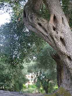 Alter Olivenbaum Hotel Nefeli im Hintergrund