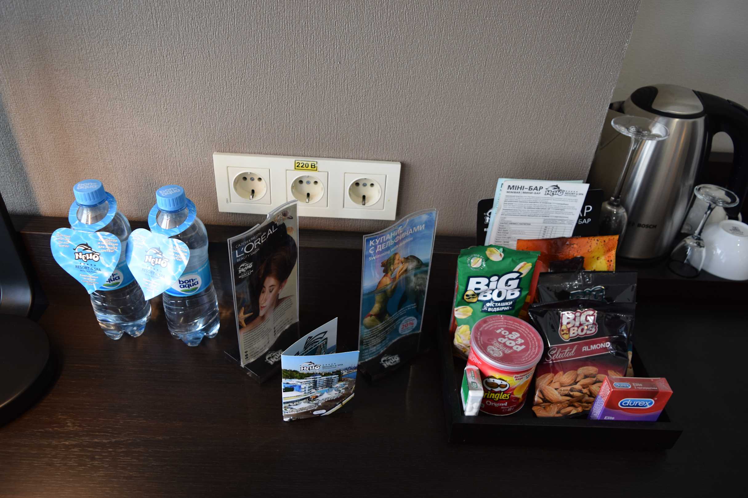 Mini-Bar im Zimmer. Bis auf das Wasser kostenpflichtig.