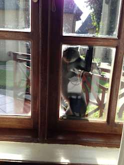 Inspektor checkt die Lage und prüft gleichzeitig, ob das Fenster offen ist, dann geht's auch mal ins Zimmer! Daher Türen und Fenster stets geschlossen halten ;)
