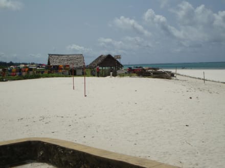Safari Hütte von Thomas links vom StrandHier warten die Beachboys auf Neulinge. Am besten freundet man sich mit einem bestimmten an und lässt sich das Meer bei Ebbe zeigen, was sehr eindrücklich ist. Dann kleines Trinkgeld. Später wird man in Ruhe gelassen.