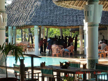 Die Poolbar mit Sitzgruppen.
