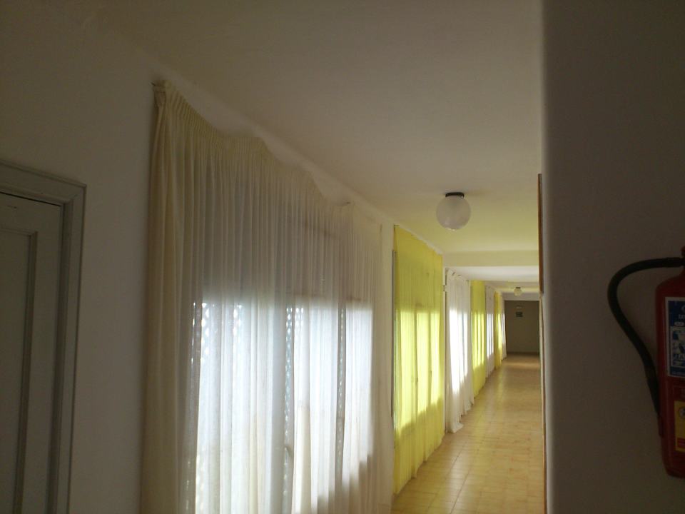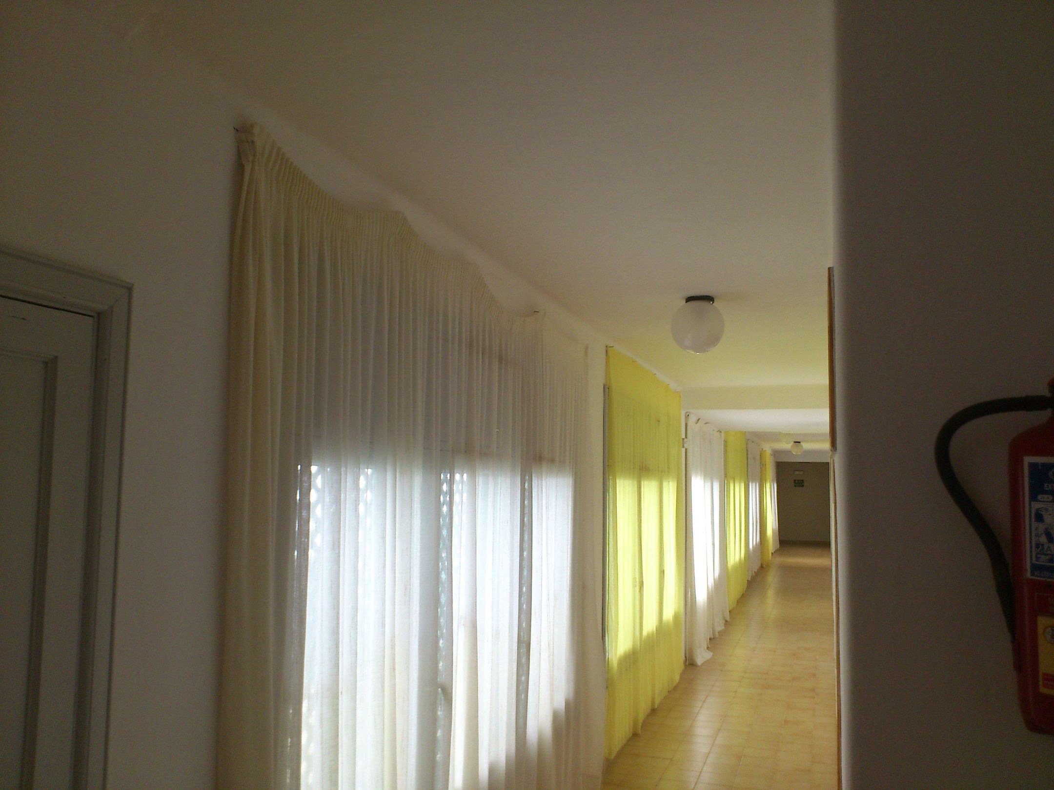 Flur mit festgenagelten Gardinen
