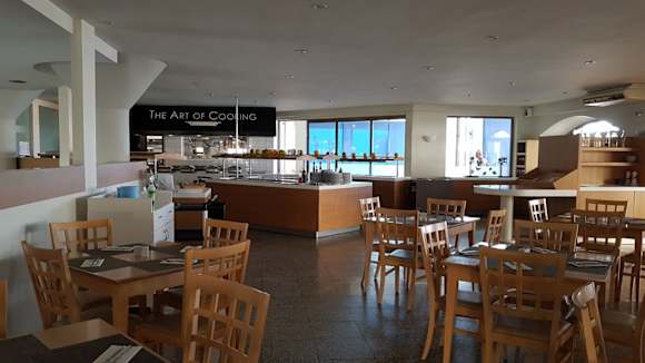 Speiseraum mit reichhaltiger Buffetauswahl.