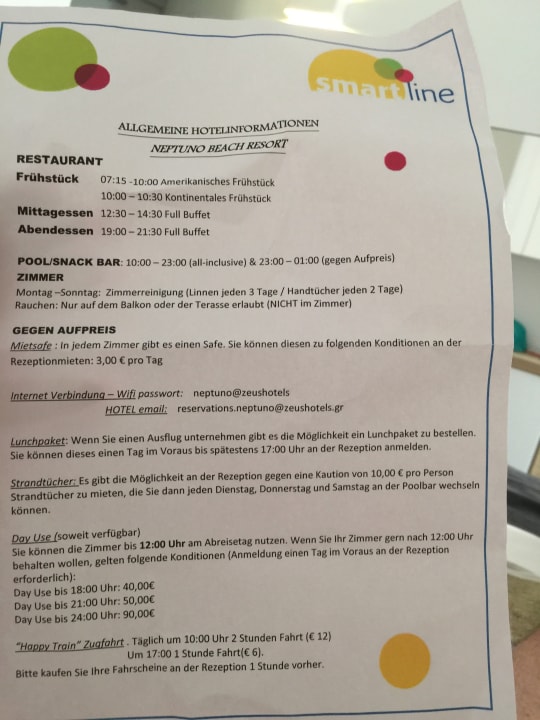 INFO ZETTEL VOM HOTEL