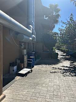 Vorbei an den Mülltonnen der Restaurantküche.