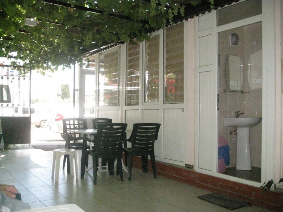 Das ist der "Haupteingang", rechts nicht wie man meinen könnte die Rezeption sondern eine lokale Autovermietung und Raum für die Angestellten.