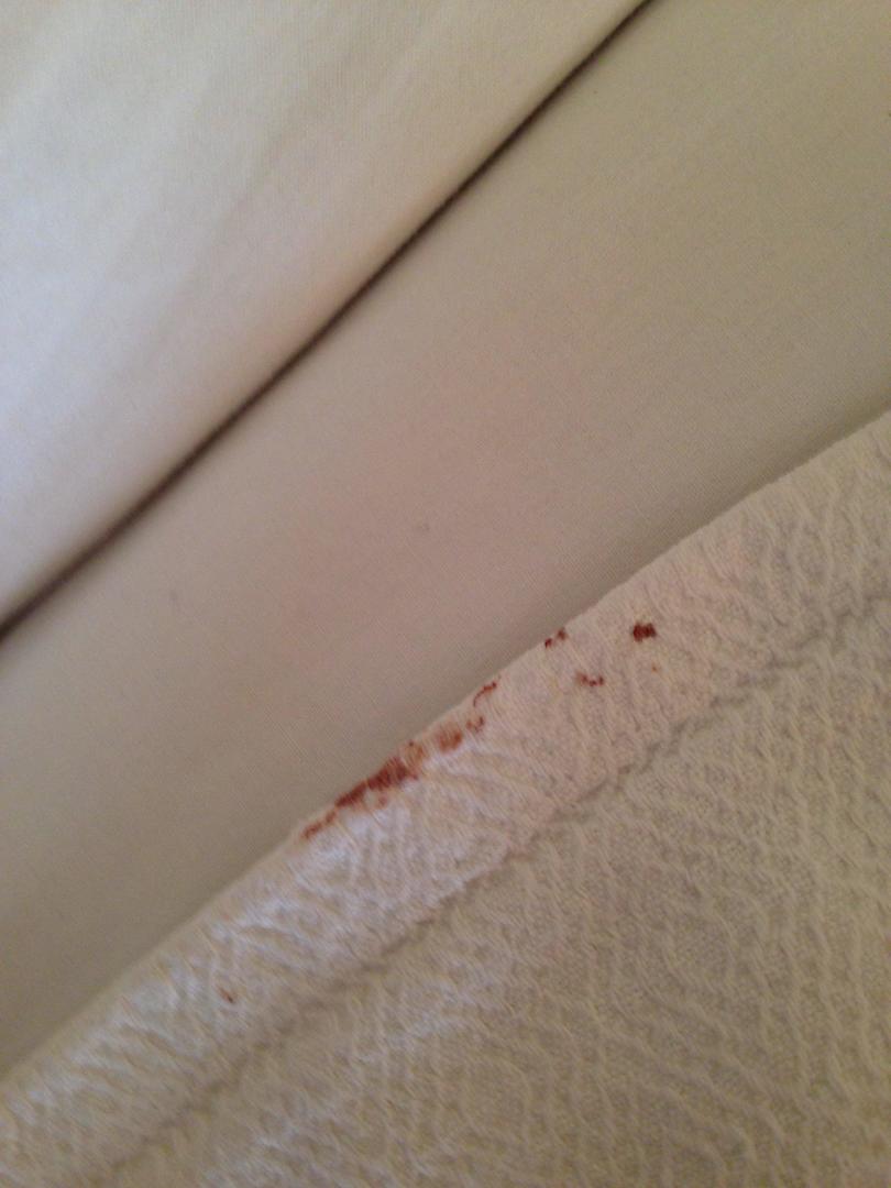 Bettdecke mit Blutflecken