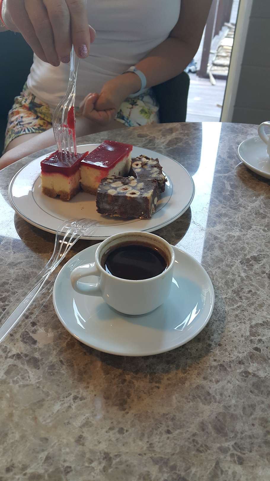 favorite of us cherry cheesecake, chocolate with nuts and coffee