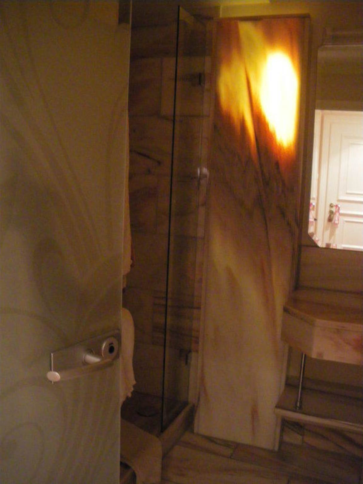 BadDie "Stein- Wand" konnte man separat mit einem Licht von hinten beleuchten...schaffte ein angenehm gedämpftes Licht im Bad