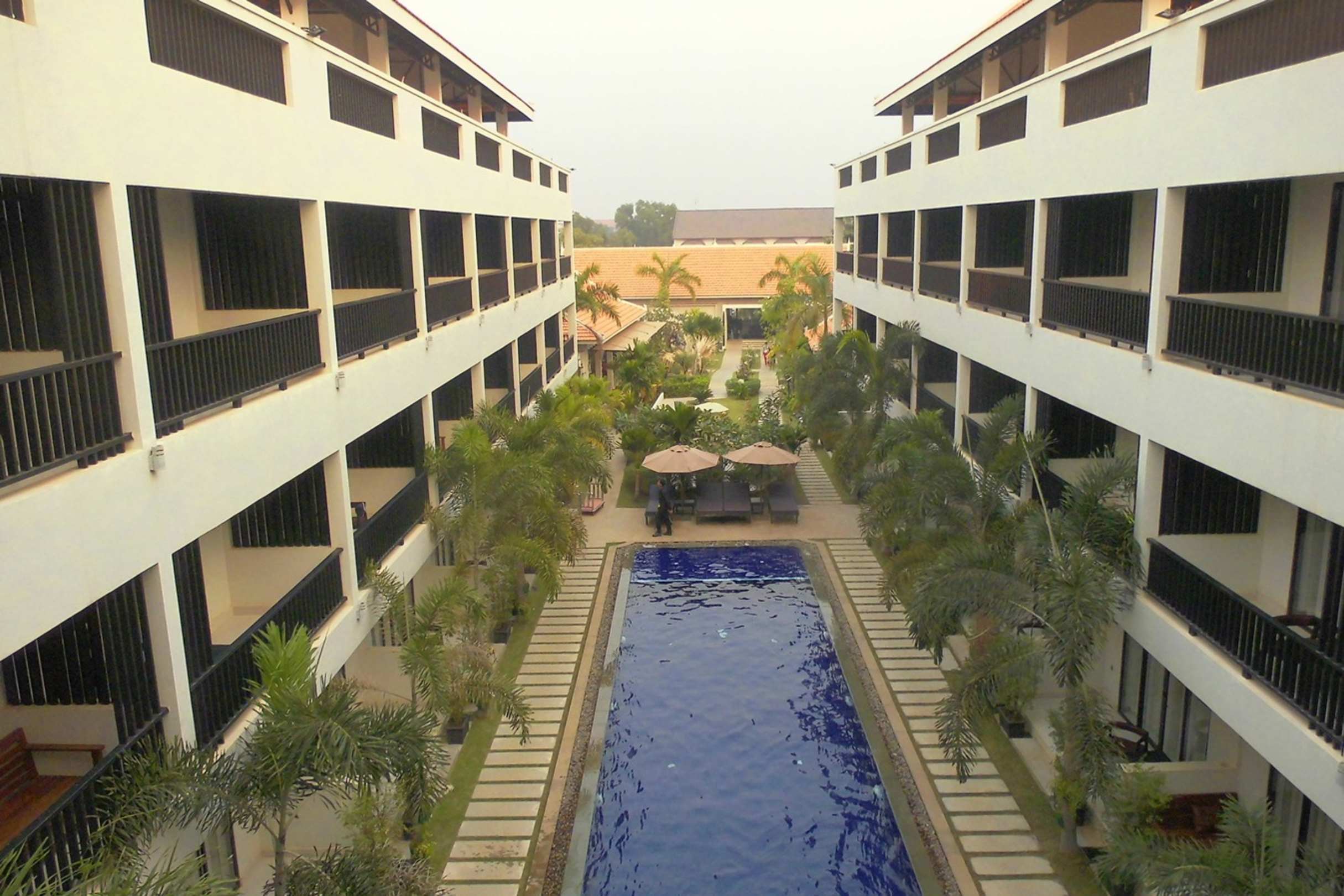 Blick von unserem Balkon auf den Pool.