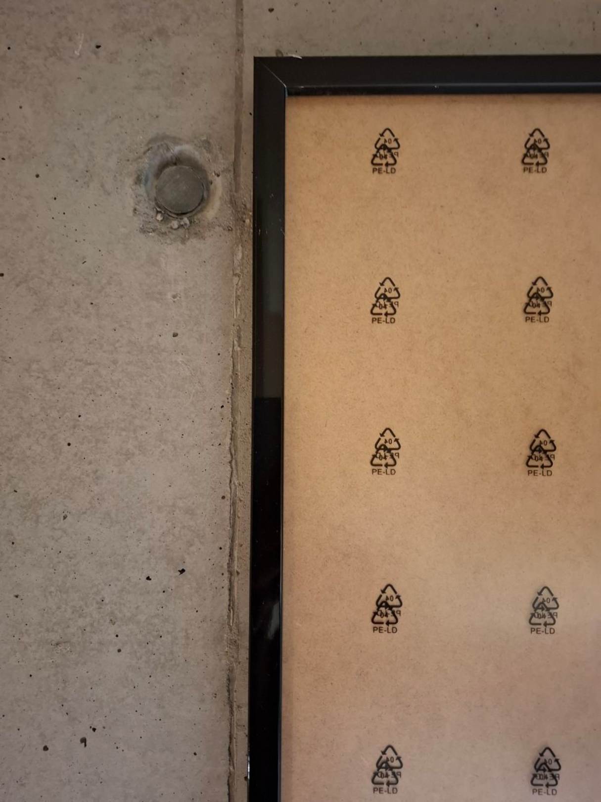 Bild an der Wand. Ich dachte erst, es handelt sich um abstrakte Kunst. Aber in Wirklichkeit hat man nur nicht die Schutzschicht vom Glas entfernt. Banal...!!!