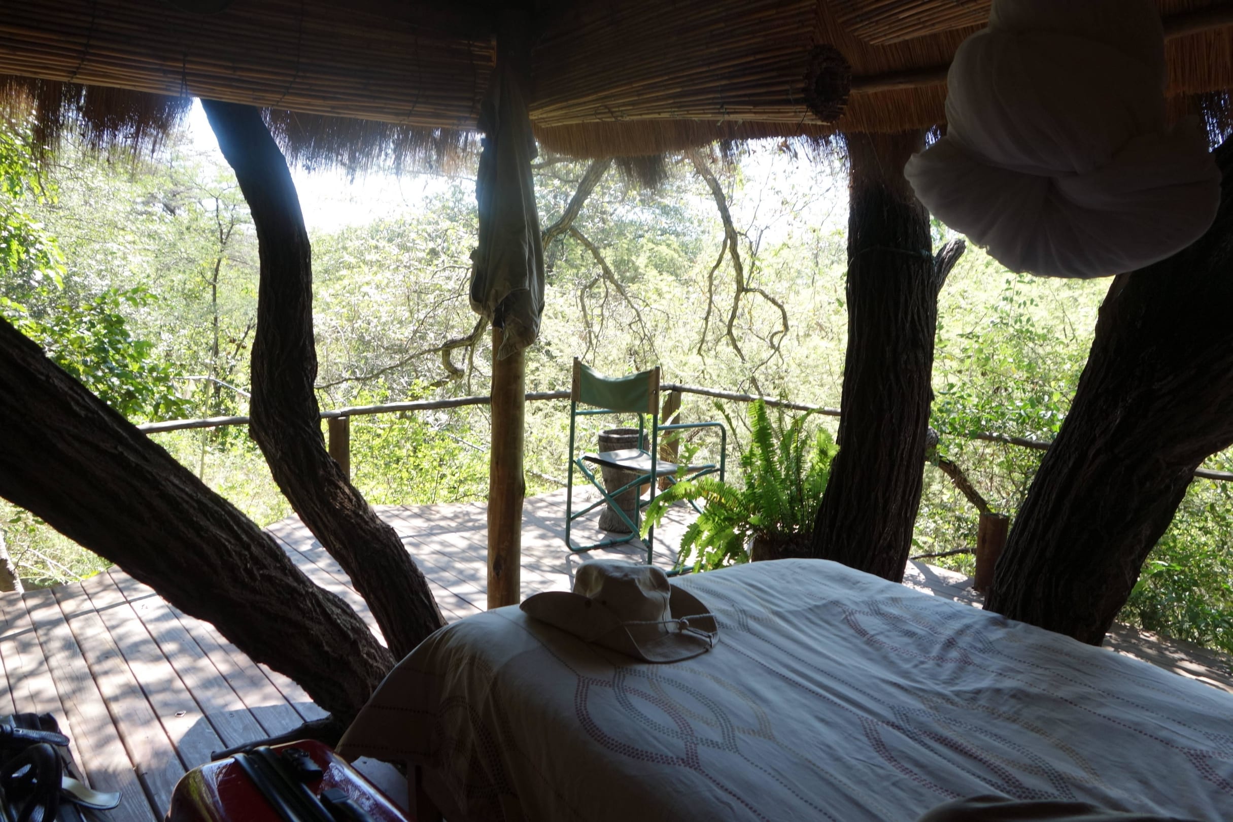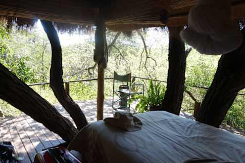 Blick vom Bett in die Wildnis