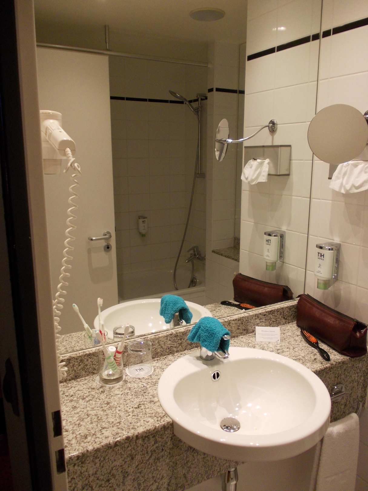 Gute ausgestattetes Bad mit Seifenspendern und Fön