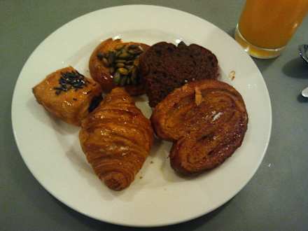 Croissants und Kuchen zum Frühstück