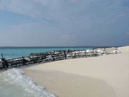 Über die ganze Insel Reethi Beach verteilt finden sich diese unschönen Sandsäcke. Am schlimmsten ist der Abschnitt vor den Bungalows 1 - 4.