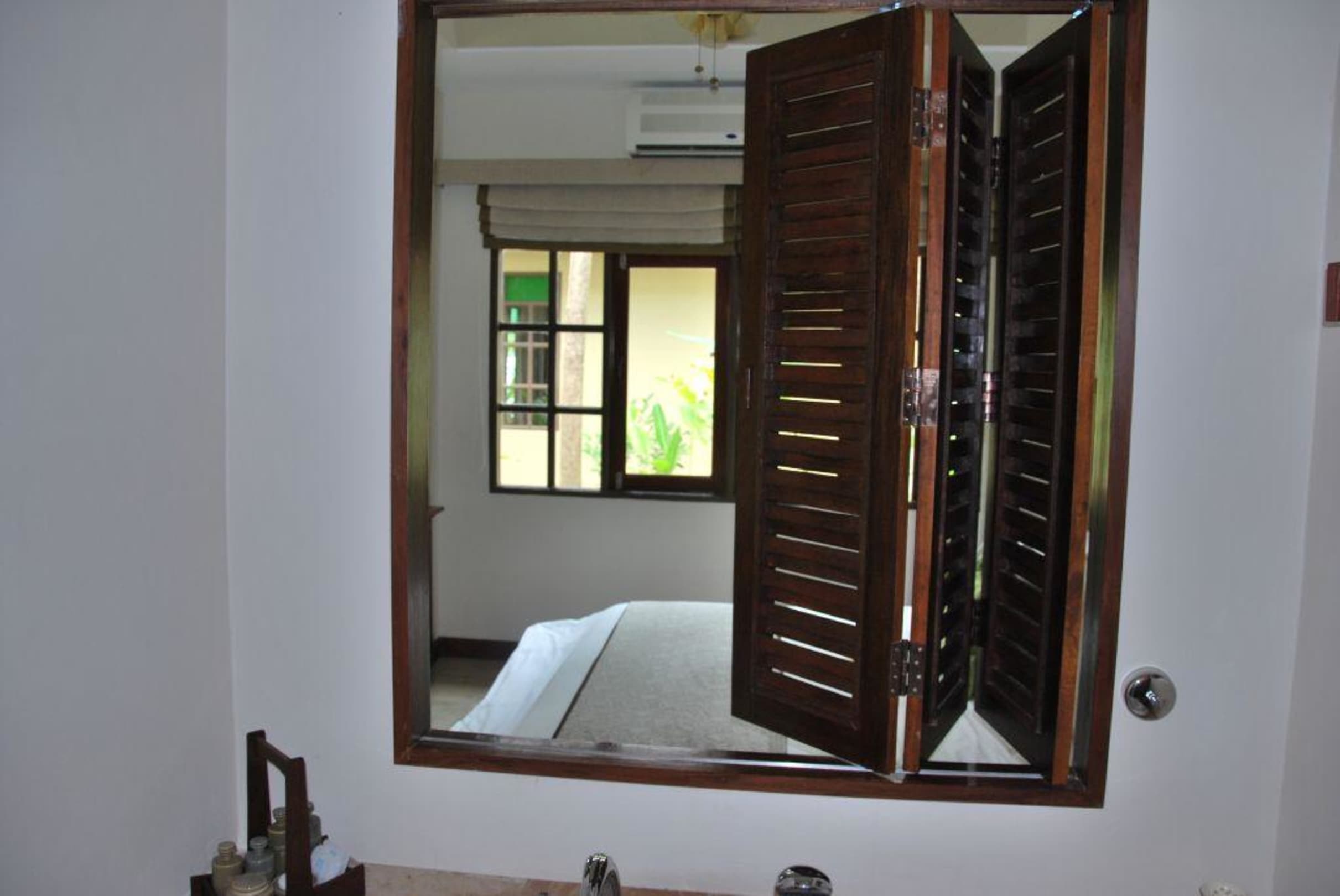 Blick vom Badezimmer ins Schlafzimmer! Etwas gewöhungsbedürftig!