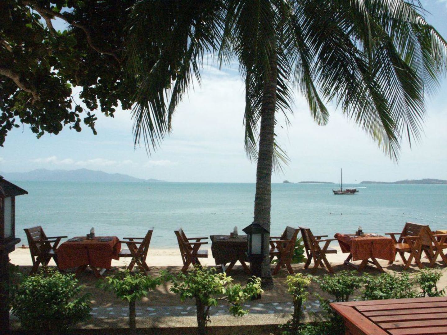 Palmen und StrandPalmen und Strand von der Sonnenliege am Pool aus