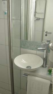 Waschbecken schließt direkt an den Duschbereich an