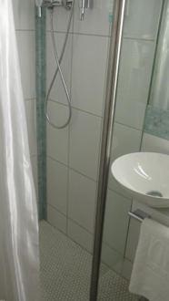 im kleinen Bad, Dusche, Waschbecken