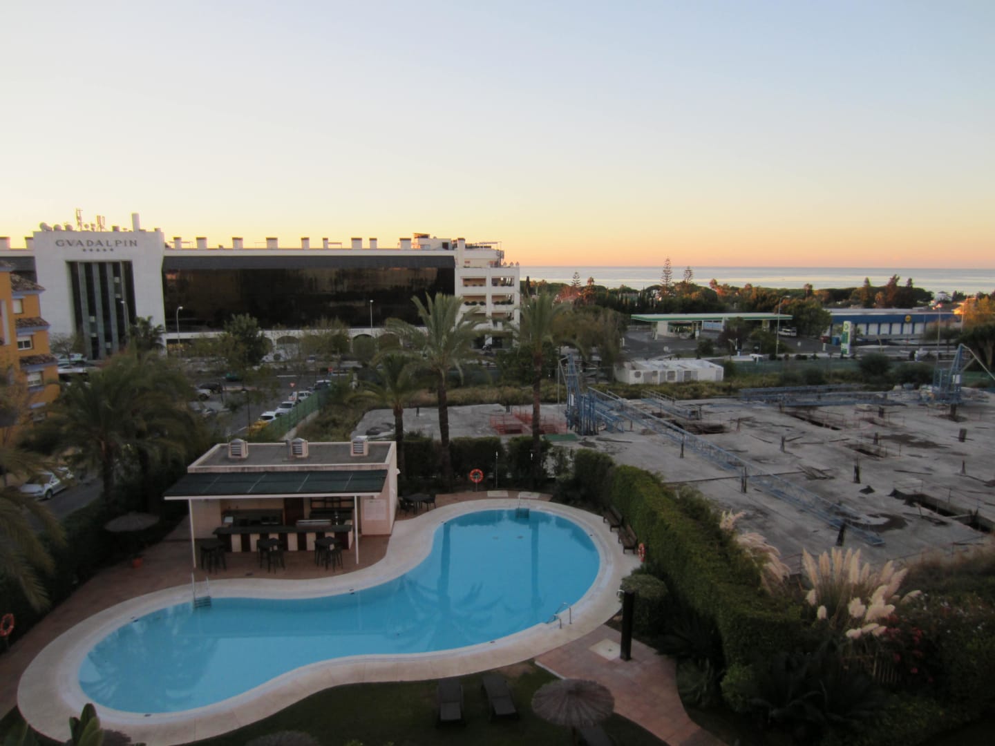 Blick auf Pool, Baustelle (außer Betrieb), Meer