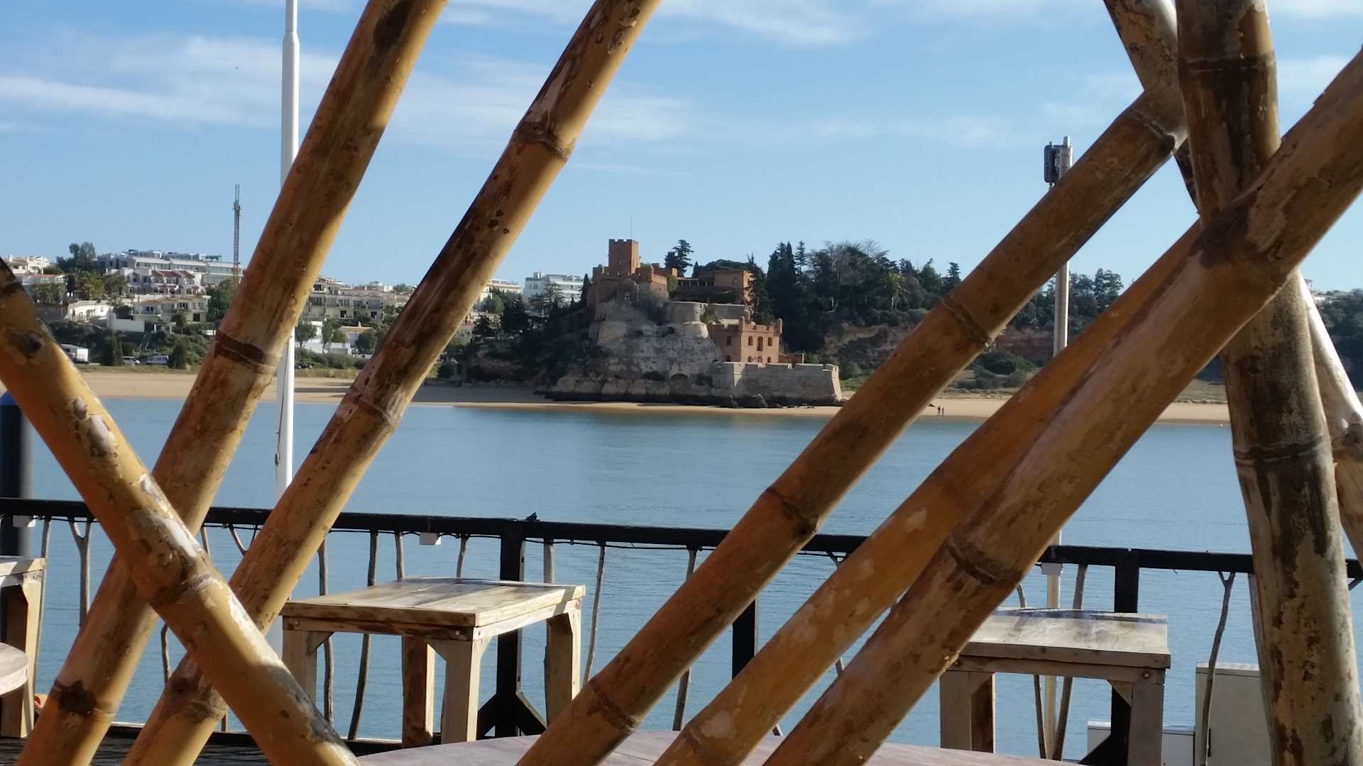 Blick vom Restaurant auf die Festung in Ferragudo