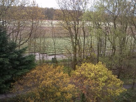 Blick auf Tulpenfelder vom Zimmer