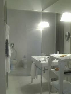 Bad/ToiletteHier sieht man das Bad, vollverspiegelt und die Toilette hinter der Glastür versteckt