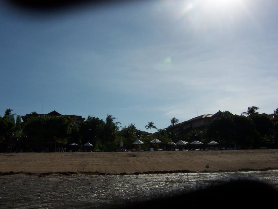 Blick vom Meer auf den Hotelstrand
