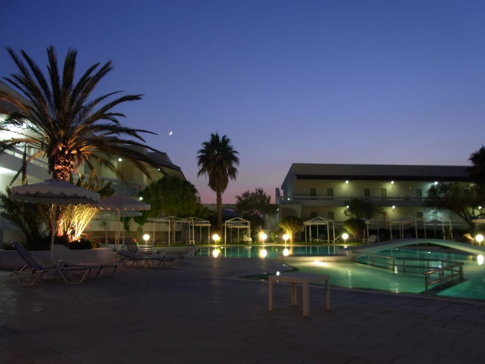 Der Garten mit Pool am Abend