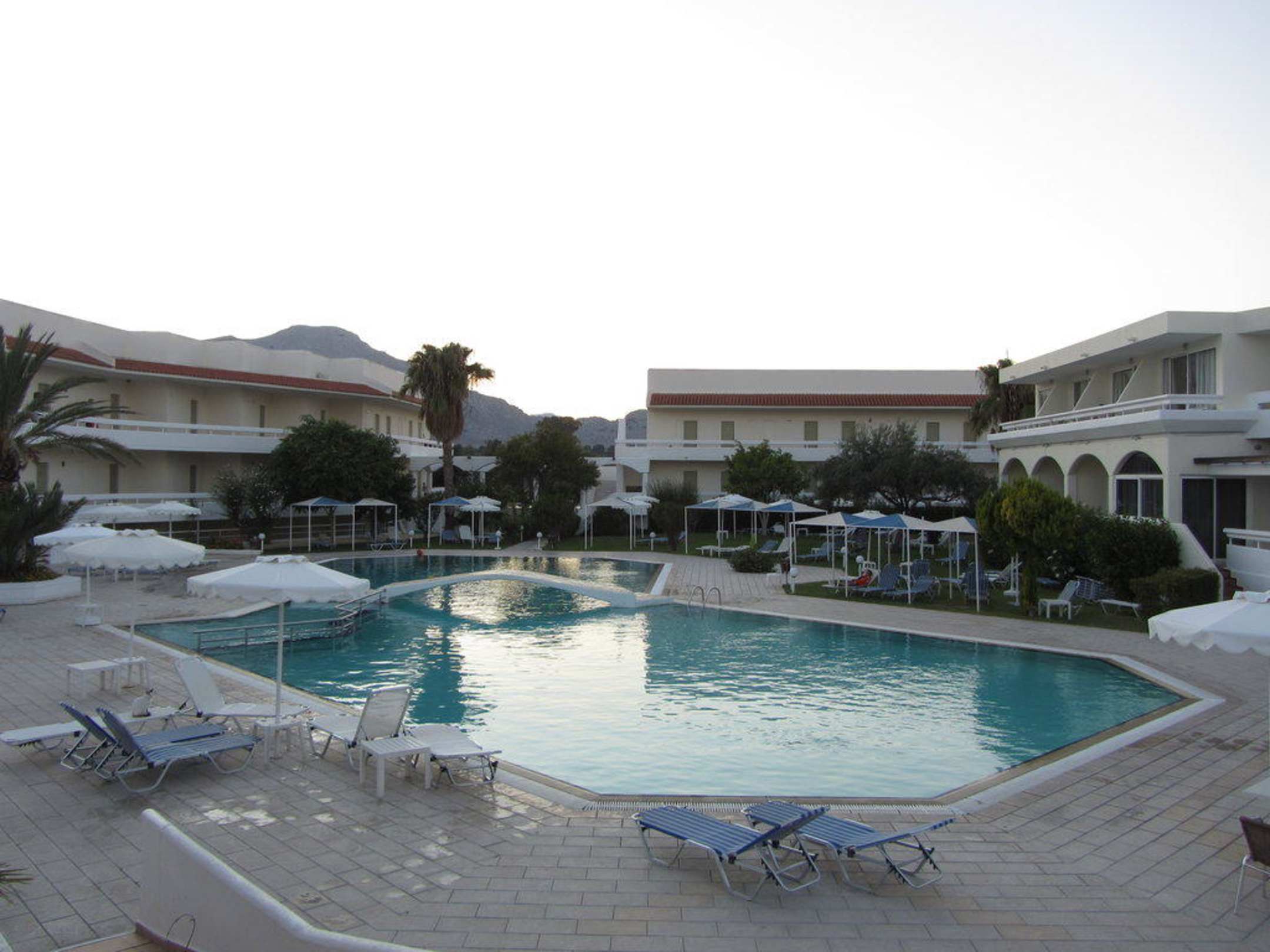 HotelInnenhof mit Pool und einigen Bäumen