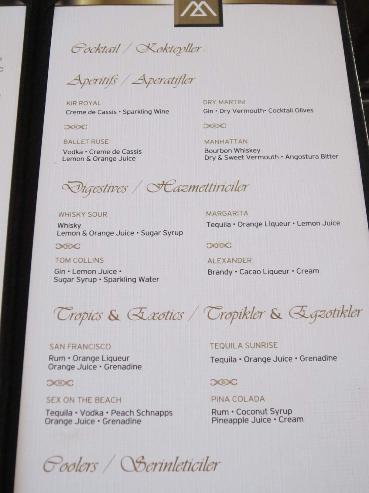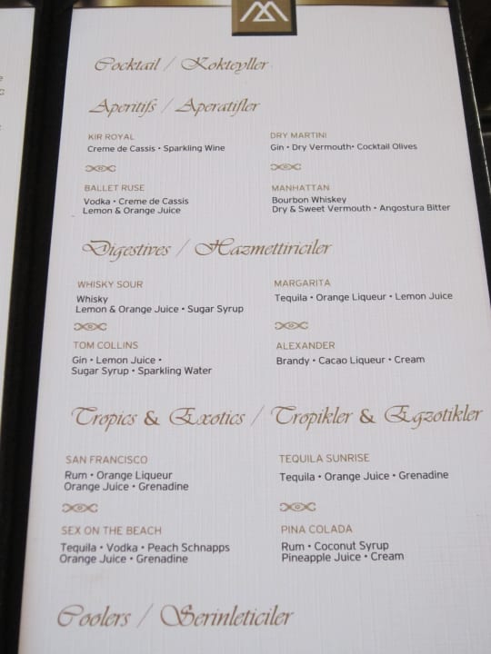 Karte in der Lobbybar