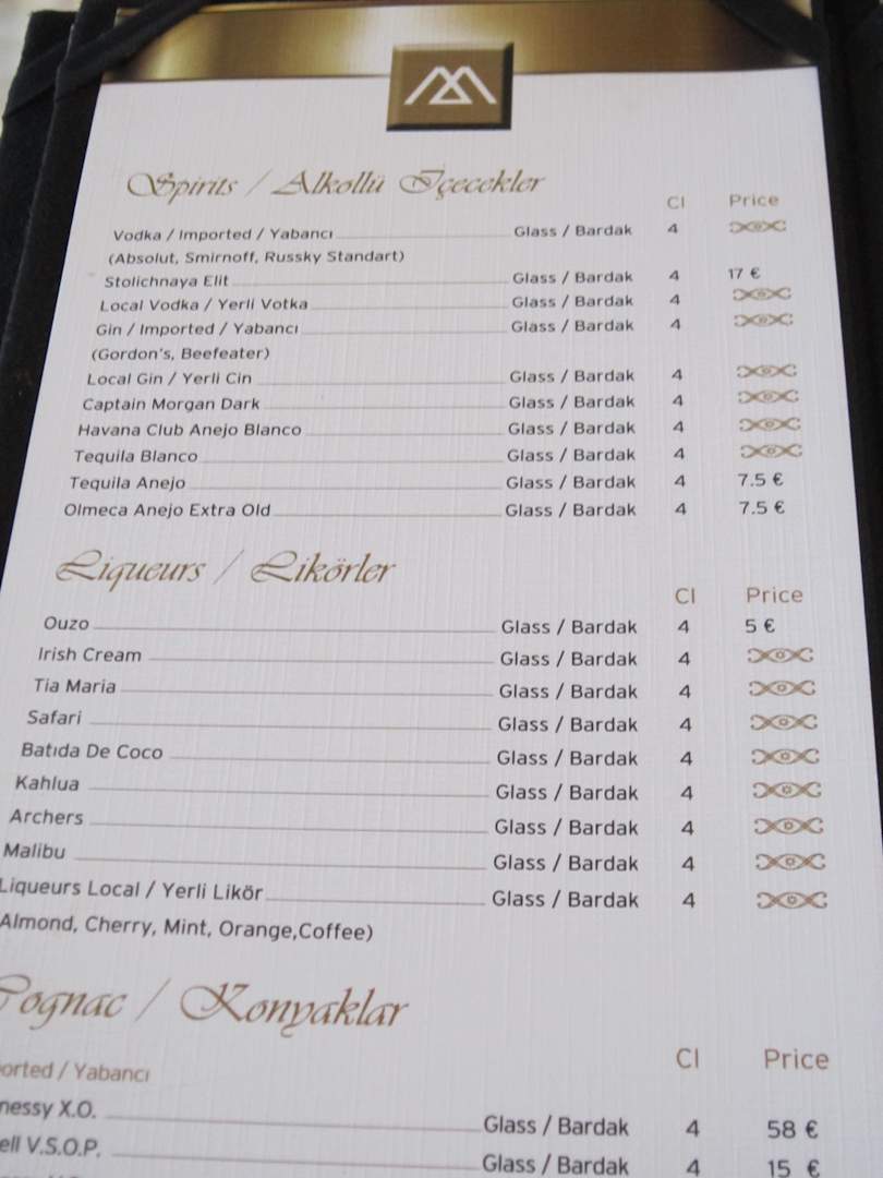 Karte in der Lobbybar
