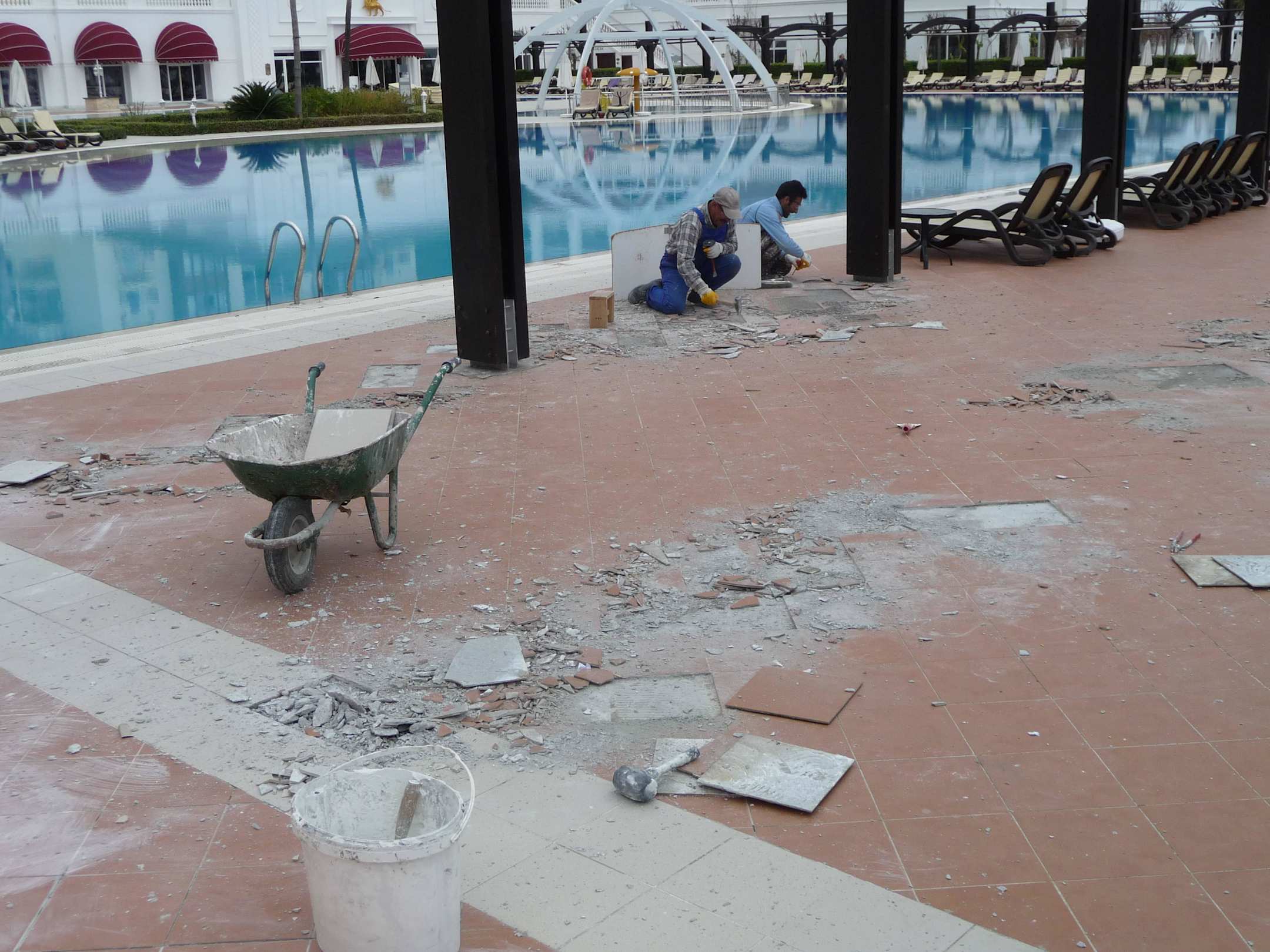 Baulärm aufgrund Fliesenreparatur rund um den Pool