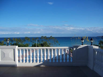 Schöne Aussichtvon der Lobby Bar übder die Terasse auf das Meer