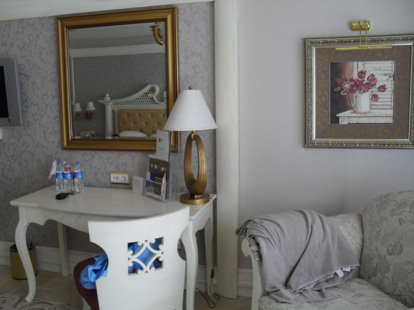 Wohnbereich -Deluxezimmer HaupthausKosmetiktisch und Sessel