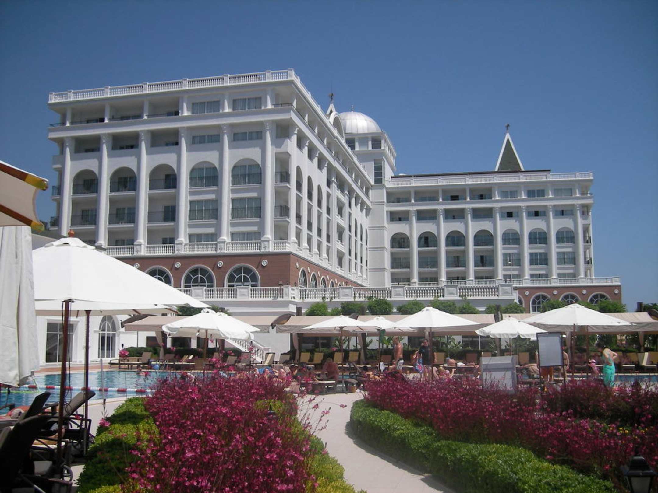 Blick auf das Haupthaus vom Süßwasserpool