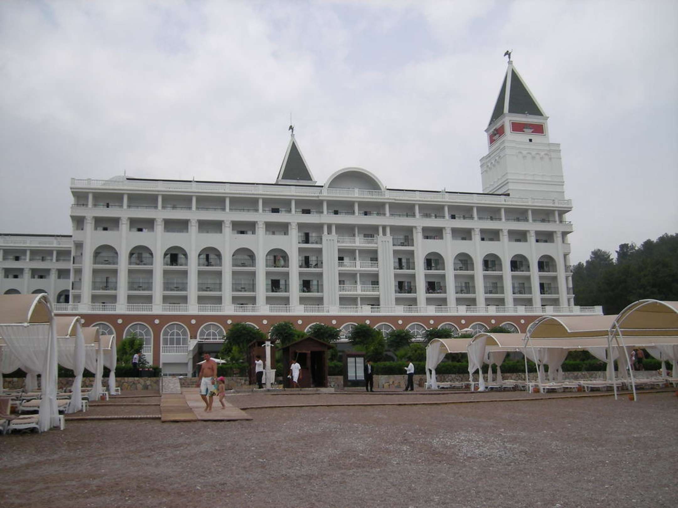 Das Hauptgebäude vom Strand betrachtet
